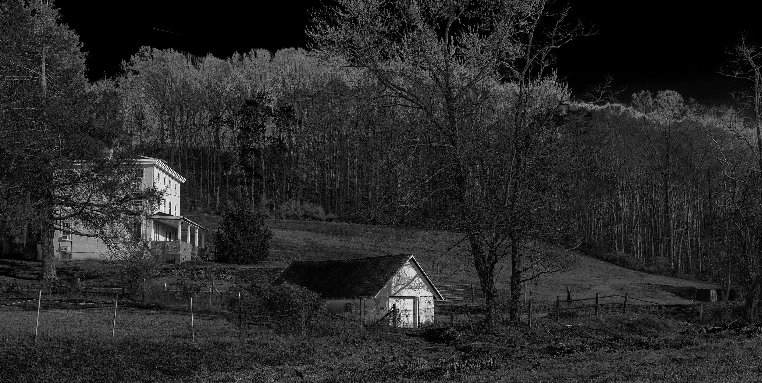 “Full Moon at Kuerner Farm”, is an exhibition that includes is a series of 10 black and white photographs by Bill Claps inspired by Andrew Wyeth’s historic seventy-year body of work created at Kuerner Farm in Chads Ford, PA, as well as a selection of artworks from Bill Claps’ Natural Abstractions series.