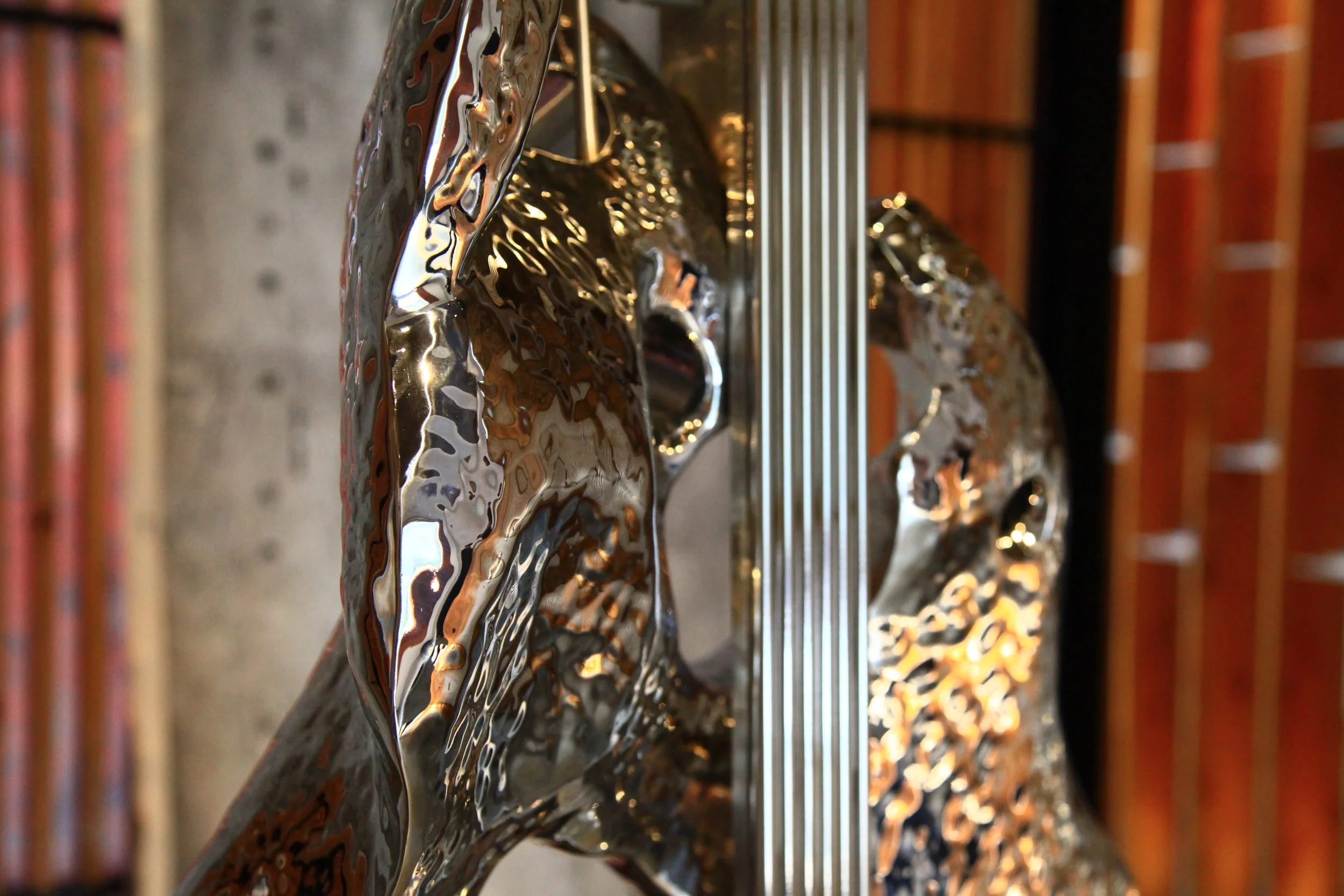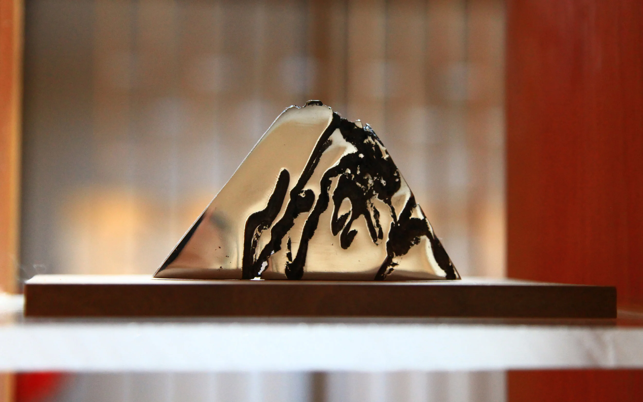 Lin's sculptures convey a strong sense of history and nostalgia. The generous use of the elegant red-black lacquer ware of the State of Chu (770 and 223 BC, present-day Hubei Province of China), the boldly outlined strings of ancient zithers from the Period of Warring States (475 to 221 BC), and traces of the Industrial Revolution, are revealed in Lin's works and create a profound and powerful vitality in his sculptures. "I seem to dream of melodies wafting by, that sob and throb . Resembling a trembling sigh, I hear a clear, sweet note afloat, Re-echoing love -songs of old."