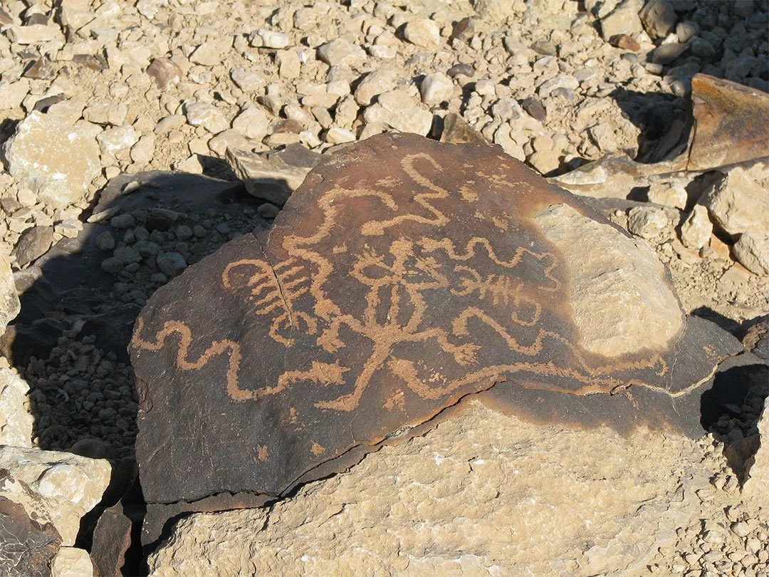 Mt. Karkom (Jabal Ideid in Arabic, "Mountain of Celebration" or "Mountain of the Multitude", in Hebrew ה כרכום "Mountain of Saffron") is located in a very remote area of the southwestern Negev Desert of Israel. It is the site of extensive pre-historic Paleolithic religious activities, which are evidenced by numerous shrines, altars, stone circles and pillars, and over 40,000 rock engravings located across the mountain and the surrounding plateaus. People have been inspired by the spirit and energy of this location for thousands of years.